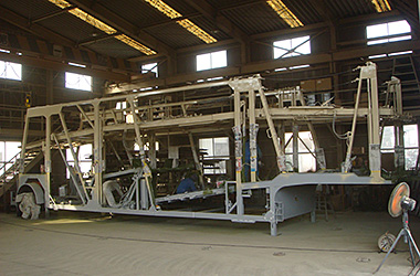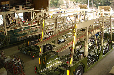 自動車メーカーは頻繁に、新型車を発表し、モデルチェンジを繰り返します。新車発表、モデルチェンジの時にも、高い積載効率で、他社に先がけて輸送を開始するために、当社では、キャリアカー制作の技術部門を有し、関連会社であるイワキ車体で独自のキャリアカーを制作しています。