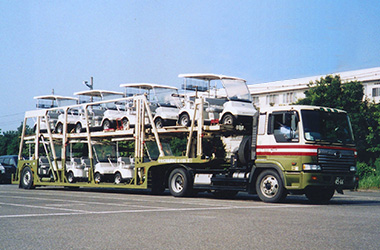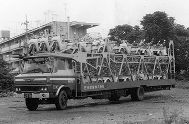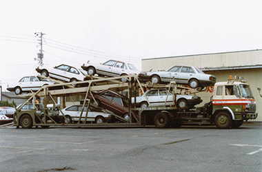 輸送コストの削減には、積載効率と実車率の向上が必要です。この2点の向上は、車両輸送という特殊な範疇では、困難とされてきました。それは、市販のキャリアカーの汎用性の低さのためです。長年、自ら運転業務に従事してきた創業者の技と、思いは、「プラスワン」の精神として、即ち、車両の積載パターンを研究し、他社よりも1台でも多く積載する精神として社内に根付き、日渉運輸では車両積載のノウハウ、独自開発のキャリアカー、関東と関西間の太いパイプ、とで輸送コスト削減を実現しています。